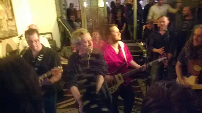 Poupou qui était dans la formation d'origine en 1995 était avec nous, on l'a vu pousser quelques choeurs et esquisser quelques pas de danse enthousiastes sur Gloria. Mahms, bassiste des débuts jusqu'en 2013, était là aussi. Il nous a rejoint pour tenir la basse sur "I can't stand it" et "Jean Genie" et nous a gratifié d'une chorégraphie très personnelle sur Gloria. Abdé, guitariste en 1999 et 2000, était là. Il est aussi venu pousser les choeurs sur Gloria. C'était chouette de vous avoir avec nous les amis.